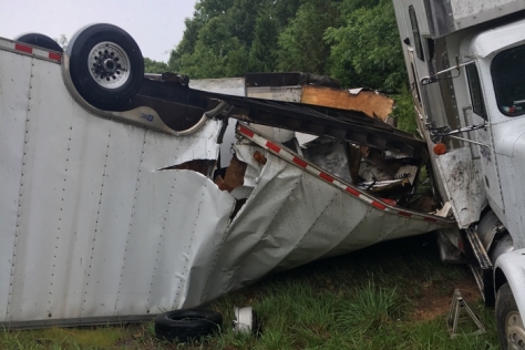 Ashby told DirtonDirt.com that while the trailer was a writeoff, his toter was only lightly hurt and his Dirt Late Model did not appear to sustain damage beyond bent bodywork. Ashby and Dwyer removed the race car and other equipment and tools from the trailer and were met at the accident site by Ashby’s brother, who drove up in a dually with another trailer to bring Ashby’s No. 61 back to the team’s shop.