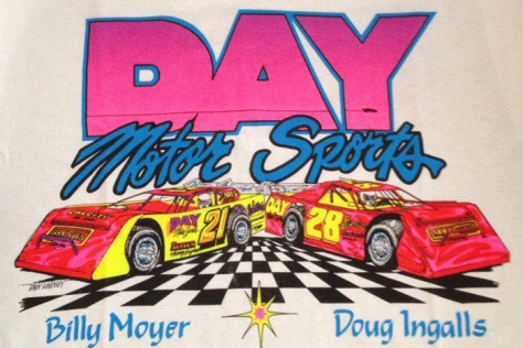 In the automotive and racing business nearly 50 years, his Bill Day Tire and Day Motorsports, a catalog company that supplied racing equipment worldwide, sponsored many top-notch drivers including Ingalls, Billy Moyer and others over several decades. (Pictured is a T-shirt from the late 1980s.)