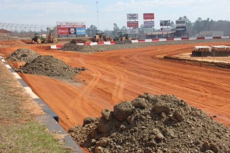 Dirt that's been hauled in is ready to be put on the 3/10-mile oval that's seen the addition of an outer concrete wall and a reduction in banking that's intended to cut down speeds, Purvis told the news site.