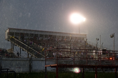 Saturday's card had been minutes away from starting with modified heat races when rain struck at 7:40 p.m., delaying the action. While strong storms missed the track, the moderate rain lasted long enough to make the track surface unracable without extensive reconditioning and intensifying showers ultimately doomed the night of competition.