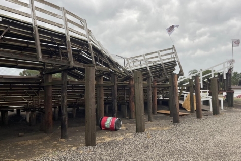 It was the second time in three months that the track was damaged by a storm. Before new owner Chris Kearns had even hosted his first event, winds associated with a thunderstorm on March 31 tore down Kearns’s newly-erected sponsor billboards, knocked over several poles, ripped up fencing and popped out a window in the tower.