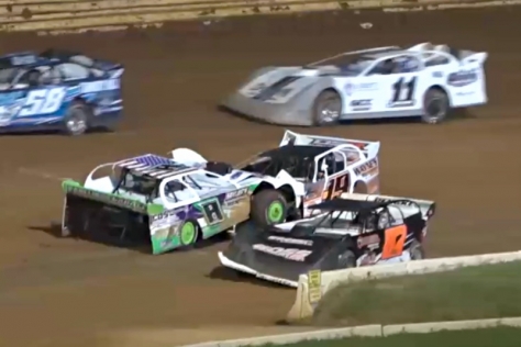 Farlling’s punishment came after an incident in the early laps of the Ron Zimmerman Tribute when contact with competitor Dillan Stake triggered a Farlling spin in turn two and a resulting yellow flag. During the caution period, Farlling drove his car clockwise around the half-mile oval, climbing the nosepiece of Stake’s car, which was sitting in turn four. Farlling then backed up and drove over the left-front corner of Stake’s car before officials intervened.