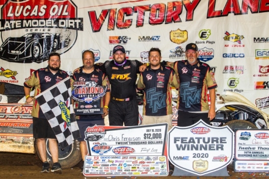 Pole-starting Chris Ferguson of Mount Holly, N.C., capped his first weekend at Lucas Oil Speedway with a $12,000 victory in the CMH Diamond Nationals, capturing his second career Lucas Oil Late Model Dirt Series victory by holding off late challenges from reigning series champ Jonathan Davenport.