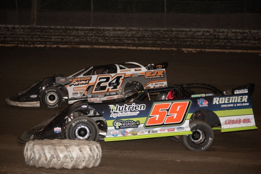 Garrett Alberson (59) outdueled Ryan Unzicker (24) late in the race.