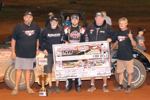 Chasing fellow Georgian and fellow front-row starter Shane Clanton for 44 laps, Overton made his dazzling, winning move on the 45th circuit and led the rest of the 53-lap main event for a $10,000 payday and his fifth career Schaeffer's Fall Nationals victory.