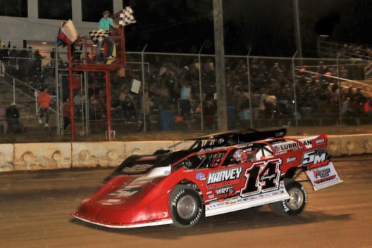 Wil Herrington takes the checkers for his $3,000 Cochran victory.