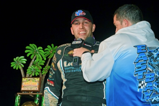 What won the race: Turning back a stiff challenge from Mark Whitener with four laps remaining, Kyle Hardy of Stephens City, Va., held on Saturday at East Bay Raceway Park to capture the weekend finale on the Crate Racin' USA Winter Shootout. Hardy earned $5,000 in fighting off fast qualifier Phillip Cobb after the 50-lapper's final restart.