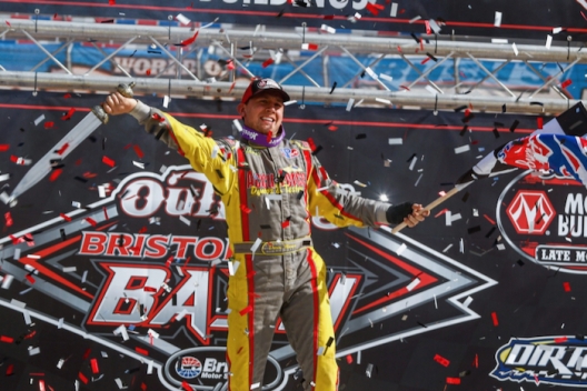 BRISTOL, Tenn. — While sitting through Saturday’s rain storms that delayed and eventually postponed Bristol Motor Speedway’s Bristol Bash finale to Sunday afternoon, Devin Moran happened to watch an old NASCAR race to pass the time. Little did Moran know that his bored race viewing would end up being a film study session that would come in handy in Sunday’s World of Outlaws Morton Buildings Late Model Series feature at Bristol’s famous half-mile oval.