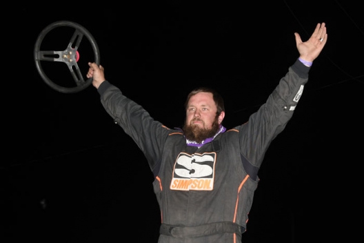 Justin Zeitner celebrates in victory lane at Miller Central Speedway.
