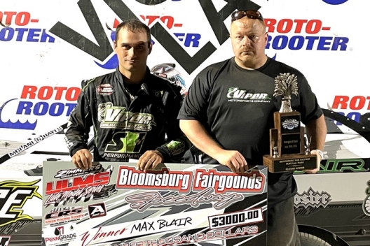 What won the race: Max Blair of Centerville, Pa., quickly found the quick route around Bloomsburg Fair Speedway, dominating all 30 laps of Sunday night's Zimmer's United Late Model Series South Region feature at the brand-new 3/8-mile oval. The three-time ULMS champion was never challenged en route to beating Dylan Yoder to the finish line by 2.006 seconds for the $3,000 top prize.