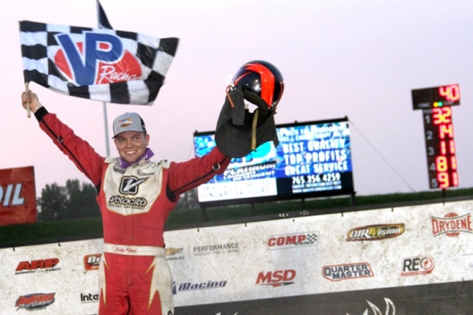 Continuing his winning ways on the DIRTcar Summer Nationals, the 24-year-old star from Oakwood, Ill., was unstoppable in gliding to a runaway victory Wednesday in the circuit’s 40-lap debut at the brand-new 3/8-mile oval outside Indianapolis.