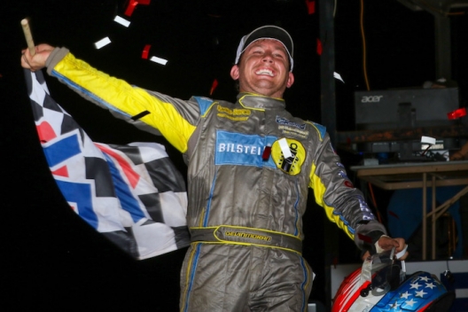 Turning back challenges from Brandon Sheppard early and Bobby Pierce late, the 26-year-old standout from Dresden, Ohio, led all but one circuit en route to matching his career-high payday with a $30,000 victory in Saturday night’s 70-lap Hoker Trucking Quad Cities 150 finale at Davenport Speedway.