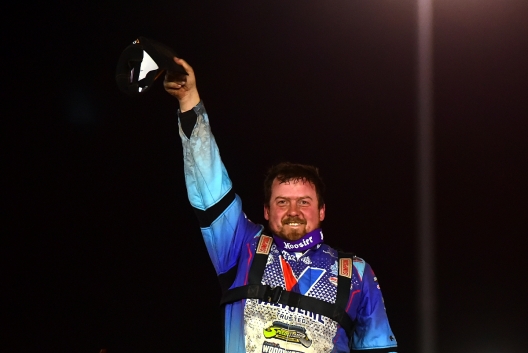 Brandon Sheppard celebrates his 81st career World of Outlaws Case Late Models victory at 81 Speedway.