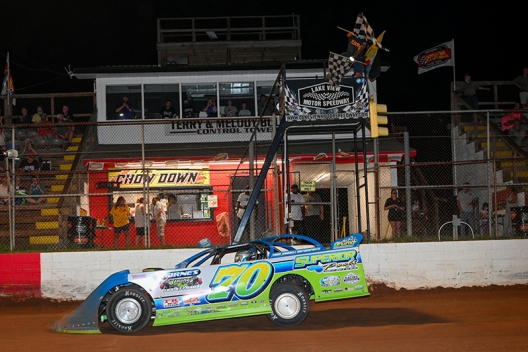 Key notes: Christian Thomas, the winner of May's $5,000 series stop at Lake View, led laps 3-24 before drawing the race's sixth caution on lap 25 and pulling off. ... Series points leader Anthony Sanders led twice for four laps (1-2, 25-26) before he sustained race-ending trouble on lap 32 while running second to Smith. ... Third-starting Cla Knight moved into second on lap 32 and trailed Smith for the final eight laps, finishing 2.578 seconds back. ... Seventh-starting Willie Millken also took advantage of Sanders' lap-32 misfortune and completed the podium. ... Johnny Pridgen advanced six positions and finished sixth. ... Daniel Adam gained four spots and finished seventh. ... Dennis Franklin and Doug Sanders tangled while battling for fifth on lap 10, ending both of their nights. ... Saturday's 40-lap feature was slowed by seven cautions and lasted 28 minutes, with eight running at the finish. ... Brian Strickland, Corey Gordon and Daniel Tucker all scratched from the feature lineup.