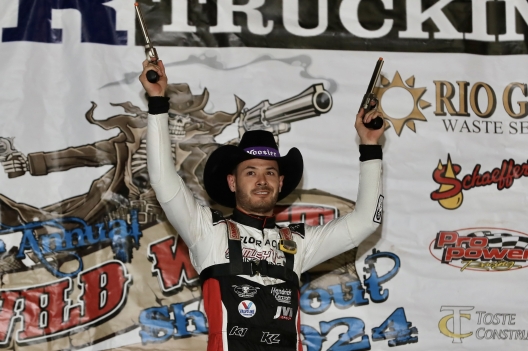 VADO, N.M. (Jan. 14) — Kyle Larson finally broke through for his first Rio Grande Waste Services Wild West Shootout presented by O’Reilly Auto Parts in Sunday night’s 50-lap finale at Vado Speedway Park.