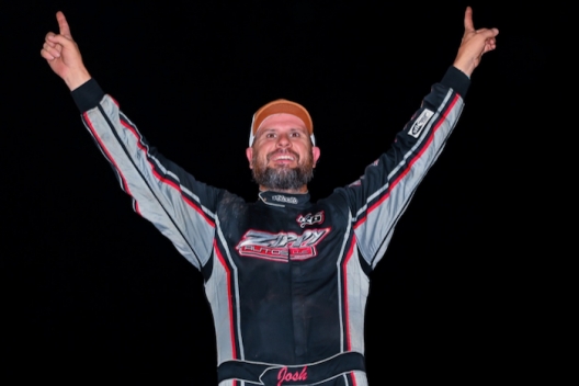 Josh Putnam celebrates his victory at Duck River Raceway Park in Wheel, Tenn.