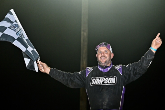 Mark Whitener celebrates in victory lane at Penton Raceway.