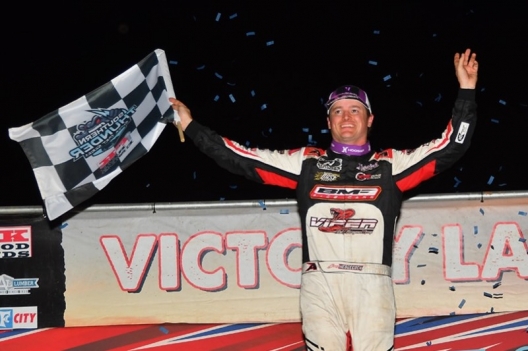 Cory Hedgecock celebrates his Smoky Mountain Speedway victory.