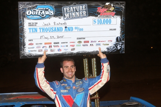 The $10,650 triumph followed Richards' late charge to win Saturday's Jackpot 100 opener in the fourth annual running of Tyler County's Memorial Day weekend event. Richards' 52nd-career WoO victory came in a race that featured five official lead changes among three drivers.