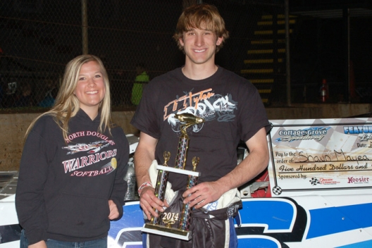 Key notes: Jacob Myers of Salem, Ore., led the first lap. ... Jason Johnson of Gresham, Ore., took the point for laps 2-11 before surrendering it to Martin on the 12th circuit. ... Mayea initially took the lead from Martin on a lap-18 restart, but the move was negated by one of a handful of mid-race caution flags. ... Mayea took the lead for good on the 21st lap and after a brief side-by-side duel with Martin, pulled away down the stretch. ... Cottage Grove's event kicked off the tour's 2014 season. ... A few showers struck the track during the afternoon hours, but the event was able to be completed as scheduled. ... Mayea became the tour's 13th different winner.