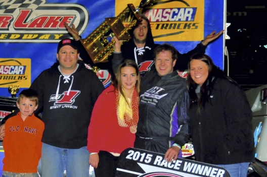 Brent Larson's team celebrates in victory lane at Cedar Lake.