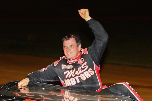 John Ownbey emerges from his winning car at 411 Motor Speedway.