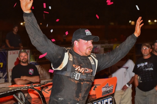 Winning his amazing ninth consecutive high-profile race over the past month, the 31-year-old native of Blairsville, Ga., charged forward from the 11th starting spot to capture Friday night’s 50-lap Lucas Oil Late Model Dirt Series Grassy Smith Memorial at Cherokee Speedway.