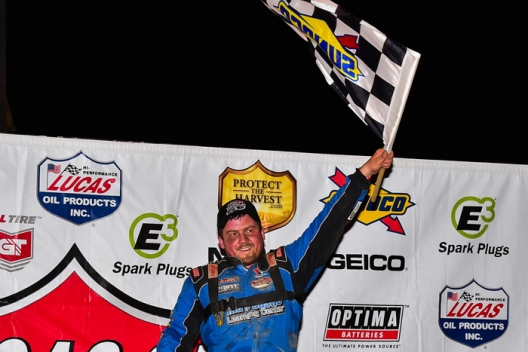 The 3/8-mile oval was the site of Sheppard’s career-highlight victory — a $50,000 score in the 2013 Dirt Track World Championship — and on Saturday night it was the scene of another glorious triumph for the 22-year-old standout from New Berlin, Ill., who captured the track’s Lucas Oil Late Model Dirt Series Independence 50.