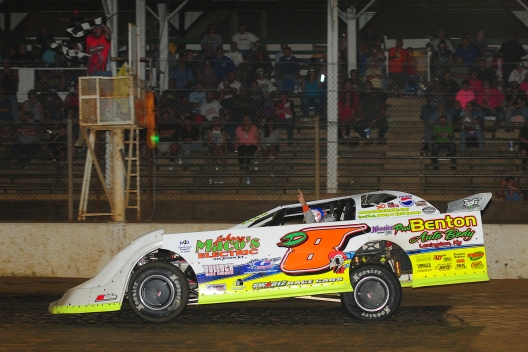 Dustin Linville takes the checkers for his $5,000 Brownstown victory.