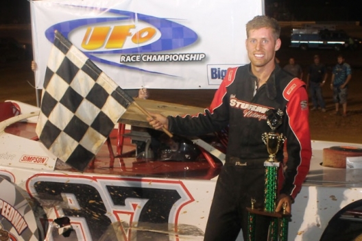 What won the race: Rallying from his 14th starting spot, Jared Hawkins of Fairmont, W.Va., made a dive-bombing pass of polesitter Jeremy Berwanger on the last of 44 laps Saturday at Tyler County Speedway for his series-leading sixth career UFO Race Championship Series victory. Jared Miley of South Park, Pa., finished second in a wild finish while Berwanger settled for third.