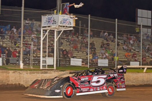 Jon Mitchell takes the checkered flag on Friday night at I-30 Speedway.