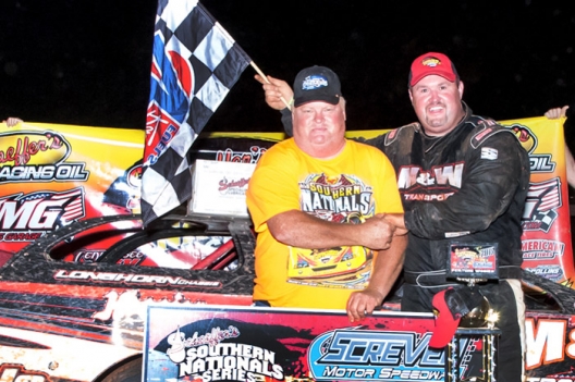 What won the race: Taking the lead from polesitter Chris Ferguson on the 35th of 53 laps, Dennis Franklin of Gaffney, S.C., led the remaining distance for a $5,300 Schaeffer Oil Southern Nationals victory in the Rebel Yell Shootout. Franklin won his eighth career series event and triumphed for the second straight year at Screven.
