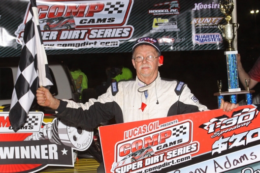 What won the race: Leading all 40 laps, Ronny Adams of Diana, Texas, won from the pole position Saturday at I-30 Speedway for his first victory on the Comp Cams Super Dirt Series.