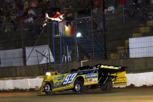 Frank Heckenast Jr. takes the checkers in Hartford, Mich.