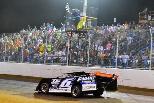 Advancing from the eighth starting position, Scott Bloomquist of Mooresburg, Tenn., grabbed the runner-up spot, with Mike Marlar of Winfield, Tenn., rallying from the 12th starting spot to run third. Dale McDowell of Chickamauga, Ga., finished fourth, with polesitter Jared Landers of Batesville, Ark., rounding out the top five.