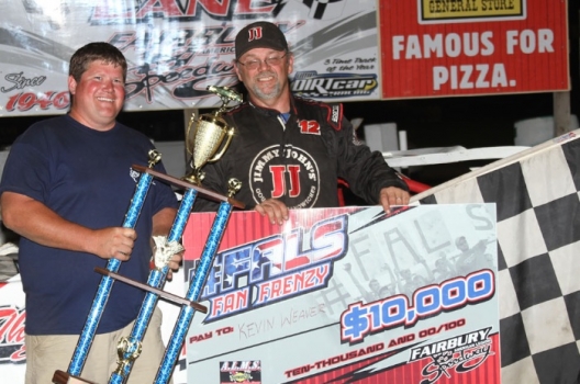 What won the race: Rallying from his 11th starting spot, track favorite Kevin Weaver of Gibson City, Ill., took the lead from Scott Schmitt on the 42nd of 50 laps Saturday for a $10,000 victory in the #FALS Fan Frenzy. Weaver notched his third career Sunoco American Late Model Series victory while Schmitt was .778 seconds back as the runner-up.