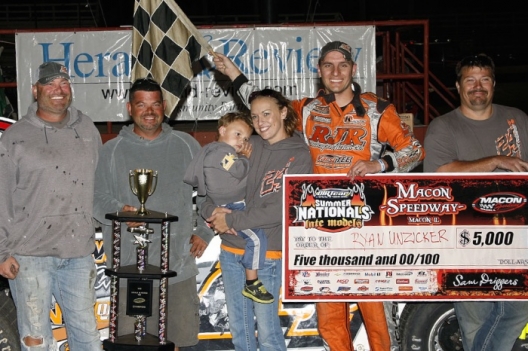 What won the race: Taking advantage of Bobby Pierce's struggles in traffic, third-starting Ryan Unzicker of El Paso, Ill., led the final 12 laps Wednesday at Macon Speedway for a $5,000 victory in the Herald & Review 100. Jason Feger finished second while the eighth-starting Pierce, who battled for the lead with Brandon Sheppard for more than half the race, broke an axle late and finished seventh, the last car on the lead lap.