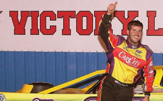 Billy Moyer Jr. emerges in victory lane at Kentucky Lake.