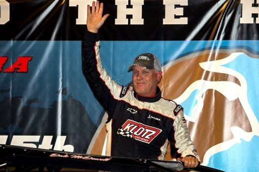 Last year’s World 100 winner Scott Bloomquist of Mooresburg, Tenn., ran among the top three the first 10 laps but slipped back and eventually out of contention along with Conley, who ended up 14th, and polesitter Nick Latham, who was out of the top 10 by the race’s long caution on the seventh lap and ended up a lap down in 20th.