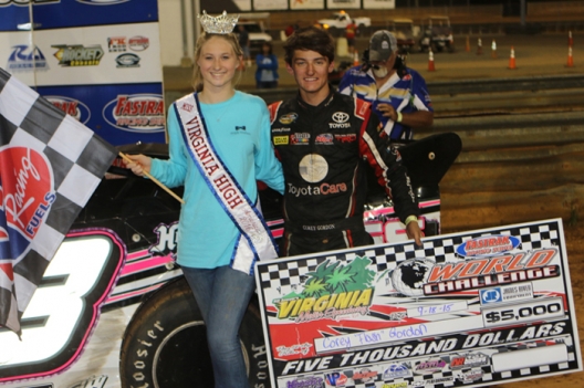 What won the race: Corey Gordon of Charlotte, N.C., kicked off the Fastrak World Championship weekend at Virginia Motor Speedway in fine fashion, registering the biggest victory of his career in the 40-lap Fastrak World Challenge preliminary feature. He surged off the outside pole to grab the lead at the initial green flag and paced the entire distance, surviving several restarts to defeat David Smith of Inman, S.C., by 2.548 seconds.