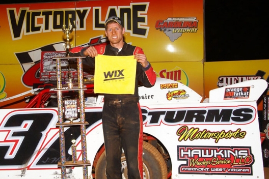 What won the race: Fourth-starting Jared Hawkins of Fairmont, W.Va., collected his first career Carolina Clash Super Late Model Series victory, holding off eighth-starting Johnny Pursley of Clover, S.C., for a $5,000 victory in the Wix Filters King of Carolinas at Carolina Speedway. Hawkins went around Ross Bailes for the lead after leader Joey Coulter fell out on a restart.
