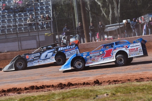 BRUNSWICK, Ga. (Feb. 7) — Using lapped traffic to his advantage, Josh Richards of Shinnston, W.Va., reigained the point from polesitter Jonathan Davenport of Blairsville, Ga., on lap 46 of 60, leading the remaining circuits to capture a victory in the Super Bowl of Racing finale at Golden Isles Speedway. He collected a Georgia-Florida Speedweeks-high $15,000 payday and his eighth career Lucas Oil Late Model Dirt Series victory.