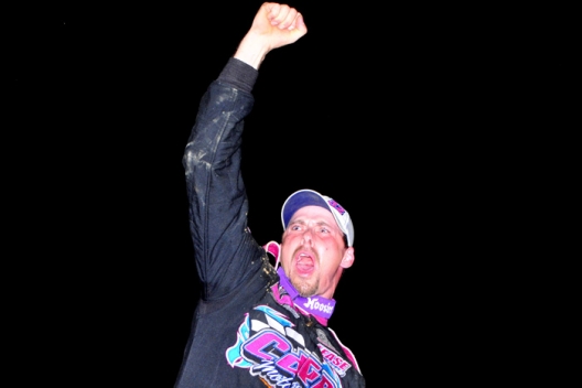 Russell Erwin celebrates his sixth straight victory overall on Friday.
