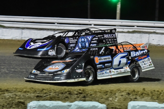 Outside polesitter Eddie Carrier Jr. of Salt Rock, W.Va., ran near the front of the pack throughout the distance and finished fourth in another Rocket XR1 and Frank Heckenast Jr. of Frankfort, Ill., advanced from the 24th starting spot to place fifth one year after winning his first-ever World of Outlaws Late Model Series A-Main at the 3/8-mile oval.