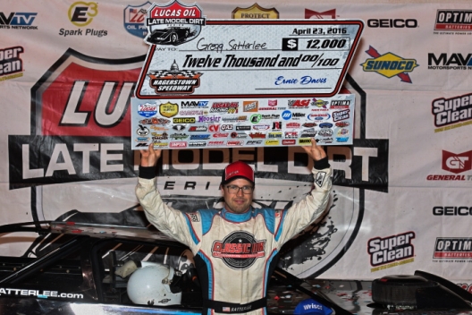 Satterlee earned $12,000 for his first-ever triumph on the Lucas Oil Late Model Dirt Series, which ran at the half-mile oval for the first time since 2013. The national tour’s scheduled events at Hagerstown were lost to bad weather in each of the last two years.