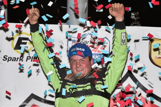 The rising 23-year-old star was the class of the field just one week after losing a potential runner-up finish in the $50,000-to-win Buckeye Nationals at Atomic Speedway in Alma, Ohio, due to an engine meltdown with three laps remaining. He surged off the outside pole to grab the lead at the initial green flag and never looked back, mastering challenging conditions at his home-state track to cross the finish line 3.325 seconds ahead of Watertown, N.Y.’s Tim McCreadie.