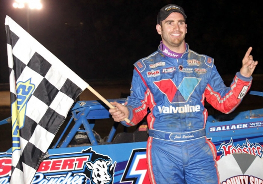Richards, the driver of the famed No. 1 Rocket Chassis house car, took the checkers ahead of fellow Rocket drivers Steve Casebolt of Richmond, Ind., and Derek Doll of Greenwood, W.Va., while reigning series champion Shane Clanton of Zebulon, Ga., was fourth. Robbie Scott of Shinnston finished fifth.