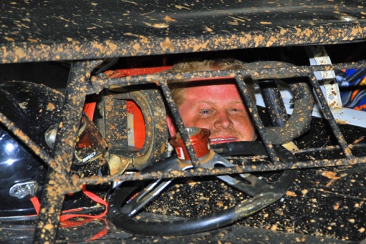 Todd Morrow is all smiles behind the wheel after his victory.