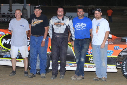 Justin Reed and his crew enjoy victory lane at Quincy Raceway.