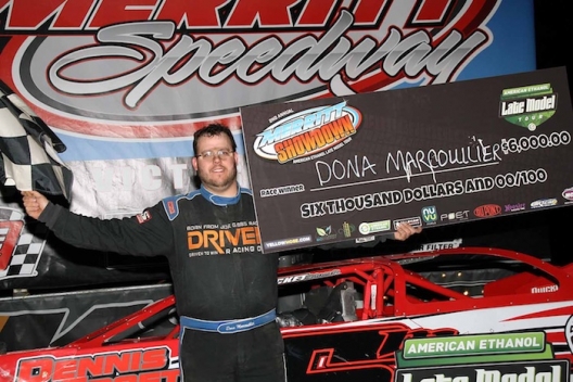 What won the race: Dona Marcoullier of Houghton Lake, Mich., went around Kyle Borgman on the third lap and never looked back in winning the Merritt Showdown in dominating fashion. Marcoullier won by 1.540 seconds over Ryan VanderVeen, earning a career-high $6,000.